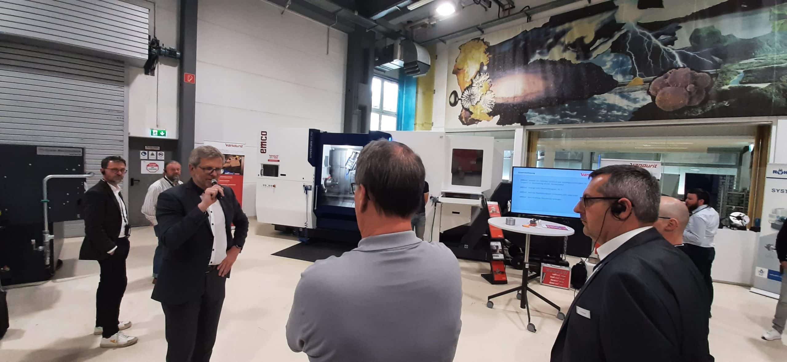 Allgemein, MesseRollFEED® Turning auf dem EMCO Seminar e-mobilität Veröffentlicht am 22. Mai 2023 von Gerrit van den Hoonaard Auf dem EMCO Seminar e-mobilität am 27.04.2023 bearbeiteten wir einen Rotor mit Rollfeed. Diese Bearbeitung (Kombination Stahl/Aluminium) stieß auf reges Interesse. Die Schnittdaten waren v=300m/min; ap=0,2mm und F=0,4mm/Umdr. RollFEED® Turning auf der Messe Global Industrie in Lyon RollFEED® Turning beim EMCO Open House 2023