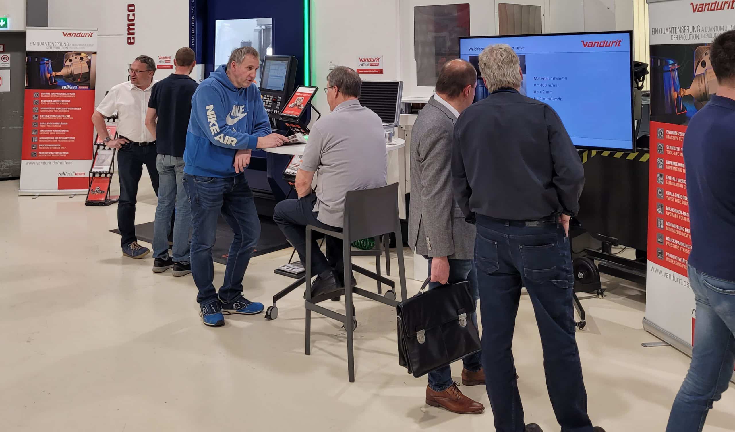 Allgemein, MesseRollFEED® Turning beim EMCO Open House 2023 Veröffentlicht am 26. Mai 2023 von Gerrit van den Hoonaard RollFEED® Turning wurde beim EMCO Open House 2023 am 04. und 05.05.2023 den interessierten Besuchern präsentiert. RollFEED® Turning auf dem EMCO Seminar e-mobilität Messeankündigung: Vandurit auf der EMO 2023 in Hannover